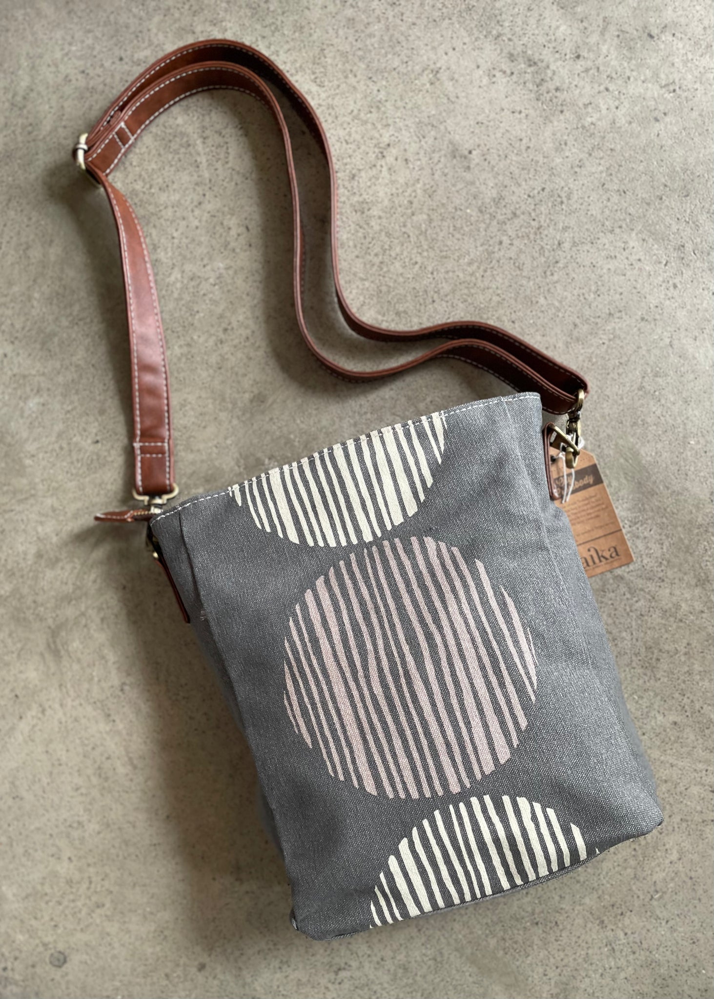 Each Maika bag is thoughtfully designed with functional details, made sustainably with recycled canvas and vegan leather and printed with eco friendly inks.