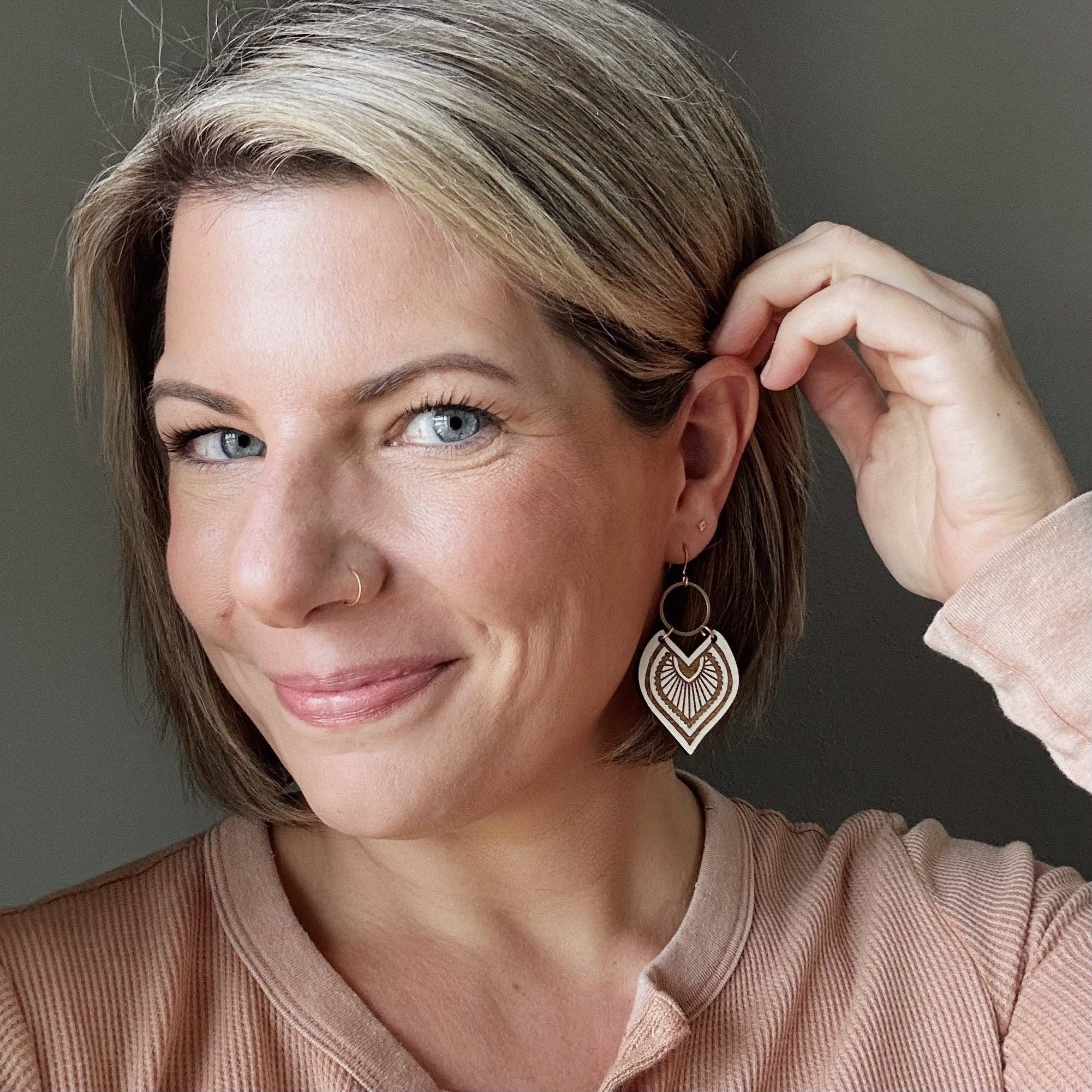 The Haida earrings from Wicket Goods are an easy way to make a bold statement. They are lightweight to wear and showcase unique designs carved into wood, before being hand painted.