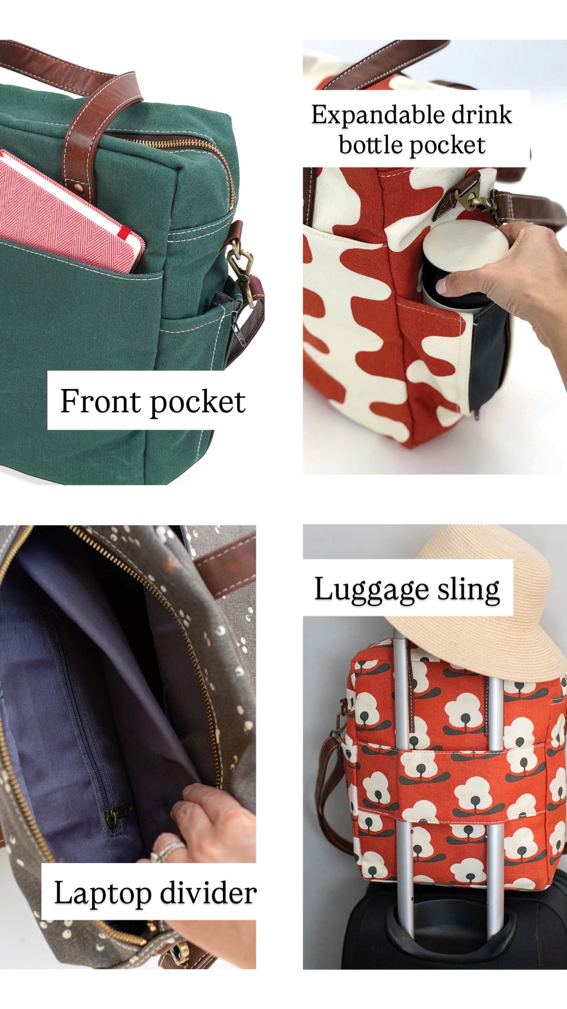 Each Maika bag is thoughtfully designed with functional details, made sustainably with recycled canvas and vegan leather and printed with eco friendly inks.