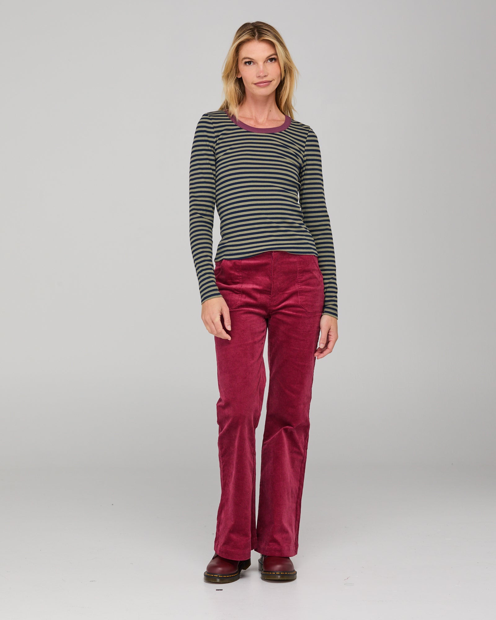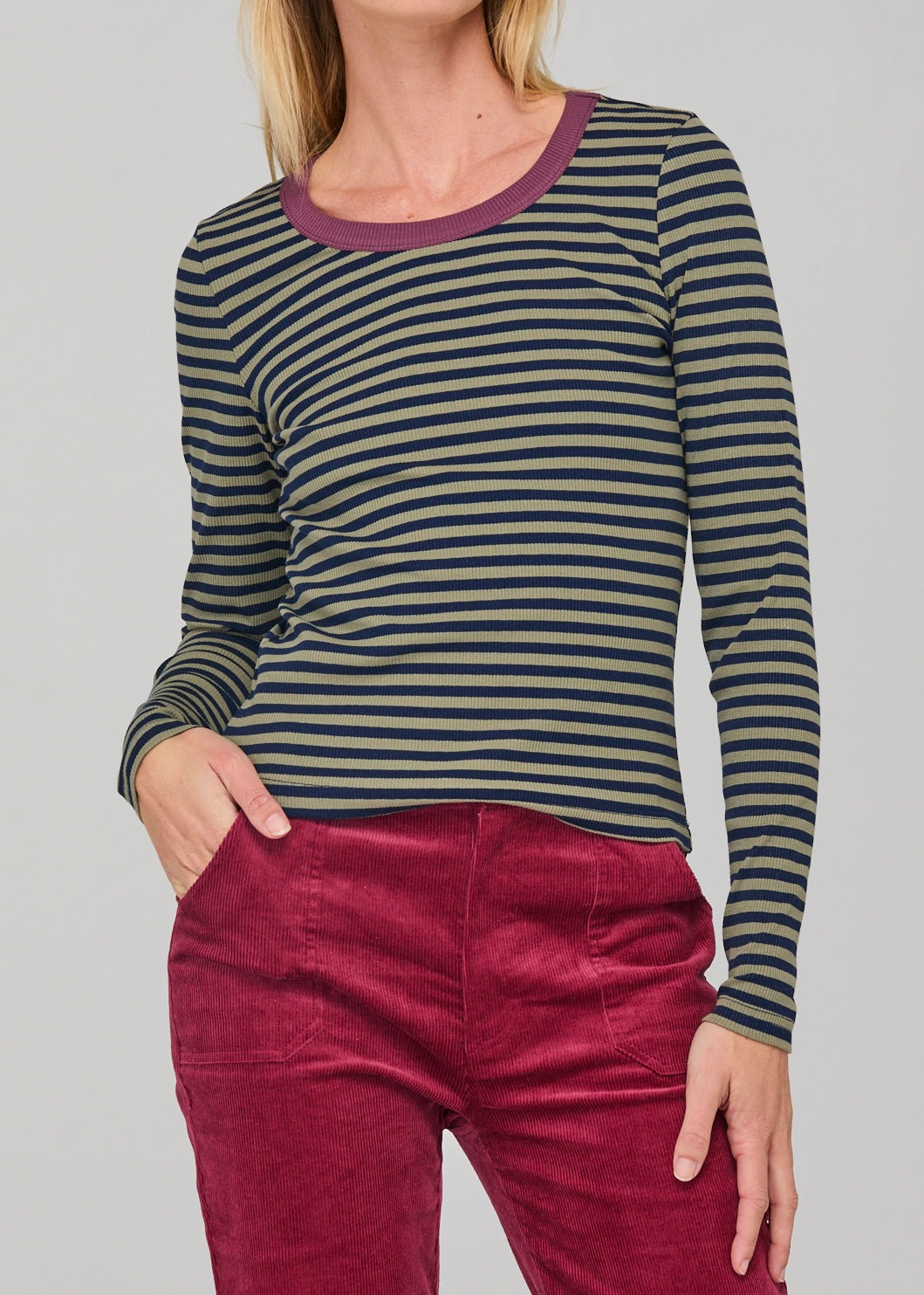 The Boom Shankar Bellissimo top is back for Winter in a stunning khaki/navy stripe.